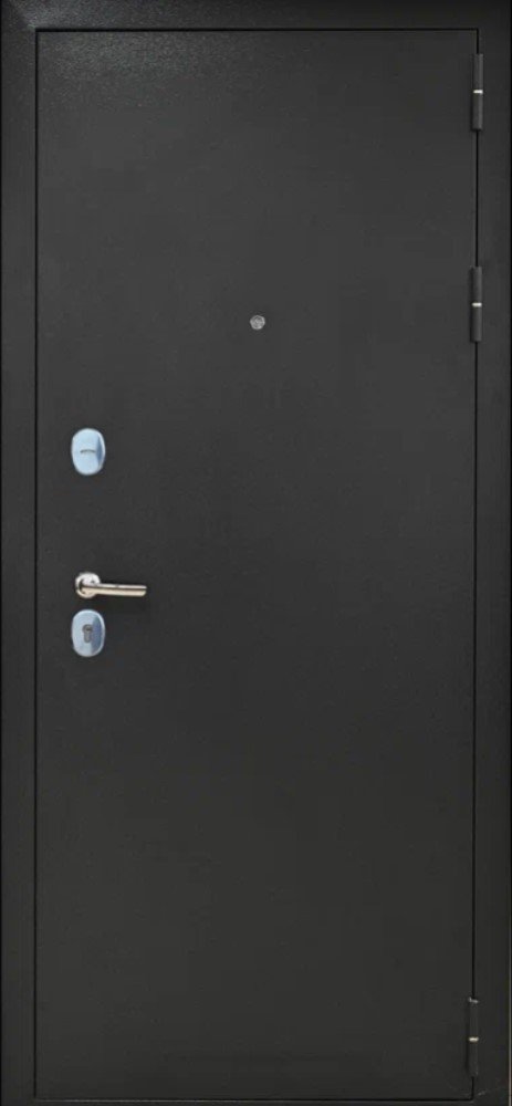 Черная матовая: Броненакладкая, сувальдные накладки со шторкой, ручка, ночник, цилиндр ключ-вертушка, глазок по центру или сбоку