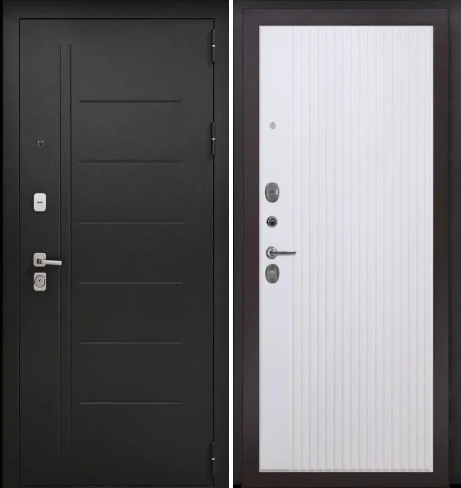 дверной глазок, ночная задвижка, порог из нержавеющей стали, фурнитура матовый хром прямоугольная, 17 серия, декоративные накладки с защитой от продувания, комплект ключей.
